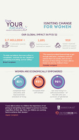 The Live Your Dream Awards have a lasting impact. In follow-up surveys, 93% of recipients reported an increase in self-esteem, and 81% completed their education, improving their living standards. Of the 56% of recipients who are survivors of gender- based violence, 96% now live in a safe environment.